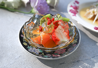 - 桂花陳酒のジュレは、キラキラと輝いて綺麗でした。フルーツたっぷりでお口直しになりました。