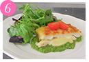 皿にジェノベーゼを広げ、[6]を盛りつける。最後にミニトマト、ベビーリーフを添える。