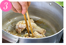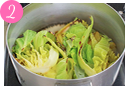- 春菊は量が多いので、少しずつ撹拌しましょう。