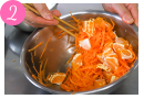 にんじんがしんなりすれば絞って水気をとり、みかんと一緒に[1]に加えて和える。